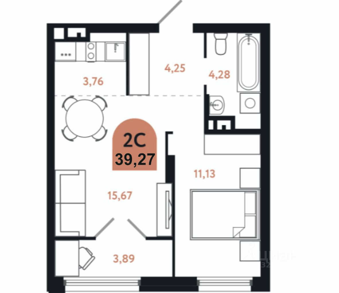 39,27 м²