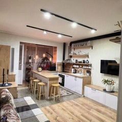 В квартире выполнен качественный ремонт, на полу ламинат, в санузле и ванной комнате кафель до потолка, лоджия разделена на 2 части, одну из которых приобщили к кухне, а вторая осталась выполнять функцию лоджии)
