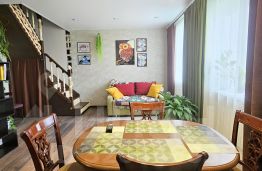 Продается просторная 2х уровневая квартира. На первом этаже расположена большая кухня- студия, раздельный санузел с большой ванной комнатой с окном, просторный коридор. На втором этаже большая спальня и две уютные комнаты. В квартире в 2021 году сделан капитальный ремонт - все стены выровнены штукатуркой, заменена электропроводка по всей квартире, переделана система отопления с заменой радиаторов (отопление централизованное), установлен котёл отопления на межсезонье, произведена замена сантехники. Ванная и туалет выложены кафелем. Везде натянуты потолки.