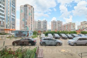 Во дворе большая парковка для машин. Хватит и жителям, и их гостям.