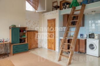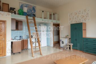 Благодаря высоким потолкам квартира по функциональное назначению делиться на два уровня: первый уровень - кухня-гостиная, санузел, спальня; второй уровень (антресоль) — рабочий кабинет.