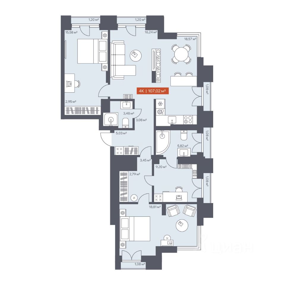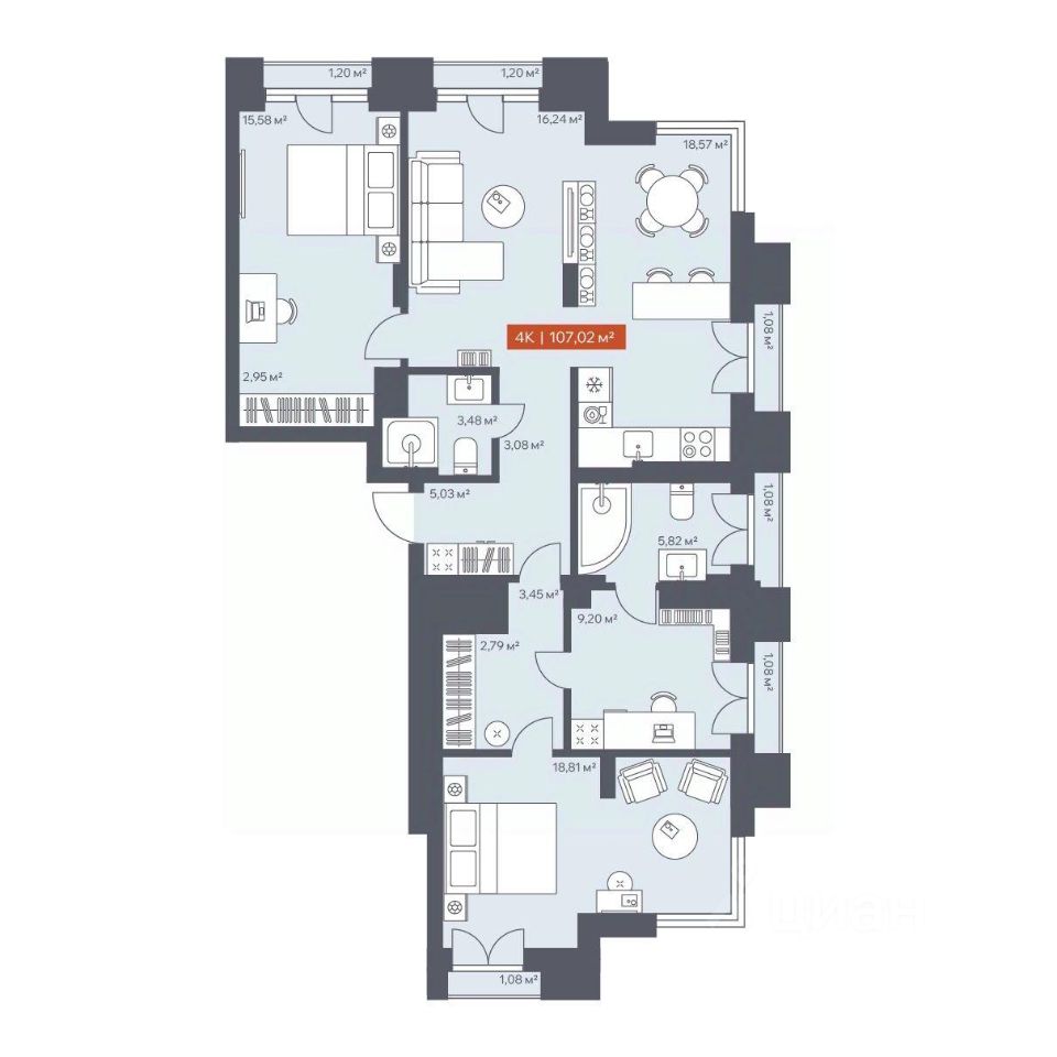 В архитектурном доме "Ломоносов" в продаже квартира N 280 площадью 107.02 кв.м. Внешние и внутренние стены из кирпича, высокие потолки, панорамные окна и утепленная лоджия. Квартира сдается в отделке white box.