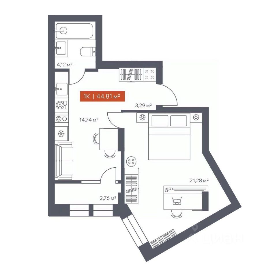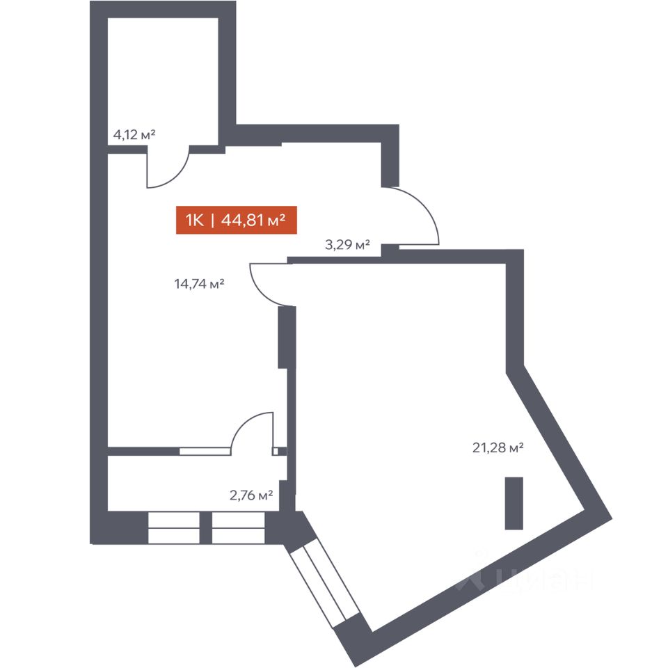 В архитектурном доме "Ломоносов" в продаже квартира N 283 площадью 44.81 кв.м. Внешние и внутренние стены из кирпича, высокие потолки, панорамные окна и утепленная лоджия. Квартира сдается в отделке white box.