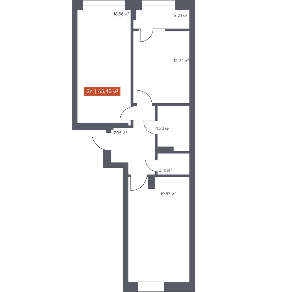 В архитектурном доме "Ломоносов" в продаже квартира N 306 площадью 65.43 кв.м. Внешние и внутренние стены из кирпича, высокие потолки, панорамные окна и утепленная лоджия. Квартира сдается в отделке white box.