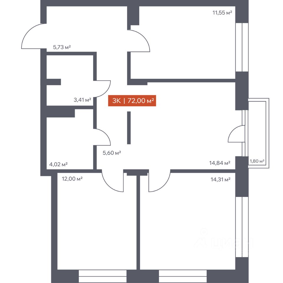 В архитектурном доме "Ломоносов" в продаже квартира N 312 площадью 72 кв.м. Внешние и внутренние стены из кирпича, высокие потолки, панорамные окна и утепленная лоджия. Квартира сдается в отделке white box.