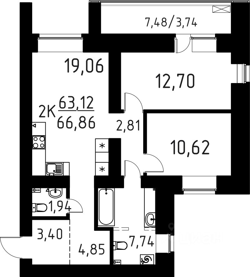 Продаётся 2-комнатная квартира в строящемся доме (Корпус А), срок сдачи: III-кв. 2027, общей площадью 66.86 кв.м., на 8 этаже. ЖК "Лето-парк" - два корпуса: 9 и 16 этажей на 409 квартир.