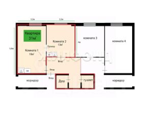 В продаже двухкомнатная секционка/гостинка (две комнаты 18 м2 и 13 м2/по документам - комната 31 м2!) на 4м этаже в кирпичном доме в Ленинском р-не.