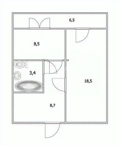 - Площадь квартиры без учета балкона: 39 м²