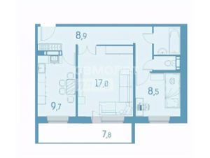 Параметры: 2х-комнатная квартира, общая площадь 52,1 кв.м.+ лоджия 8 кв.м., этаж 12 из 17.