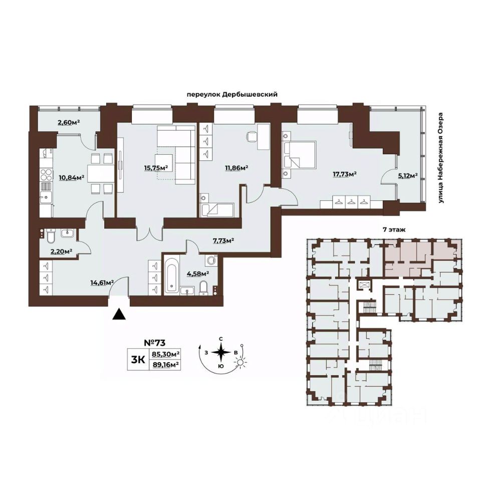 Продаётся 3-комнатная квартира в сданном доме (Дом 30), срок сдачи: III-кв. 2024, общей площадью 89.15 кв.м., на 7 этаже. Характерная черта клубного дома "Заозёрный Deluxe" - Всего 8 этажей и 85 квартир премиального сегмента, 44 парковочных места в подземном паркинге высокий уровень качества всех материалов и только самые современные технологические решения, а именно: