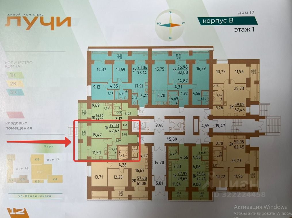 В продаже отличная однокомнатная квартира в ЖК "Лучи" ул. В. Кандинского, 6