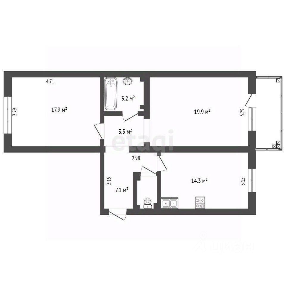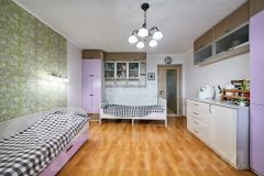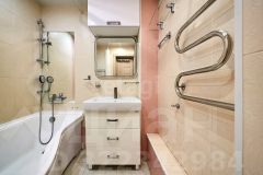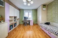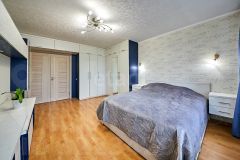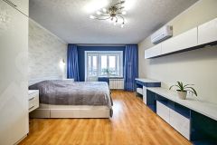 Спальня оборудована большой гардеробной, а вторая комната подойдет для детской или кабинета. Во всех помещениях проложены дополнительные розетки для интернета и телевидения. В санузле и на утепленной лоджии с новыми стеклопакетами установлены теплые полы.
