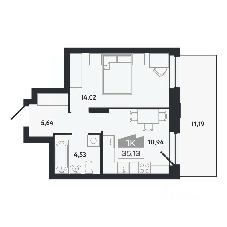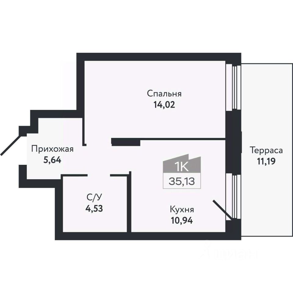 Общая площадь35,13 м²