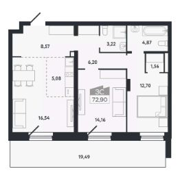 Общая площадь72,9 м²