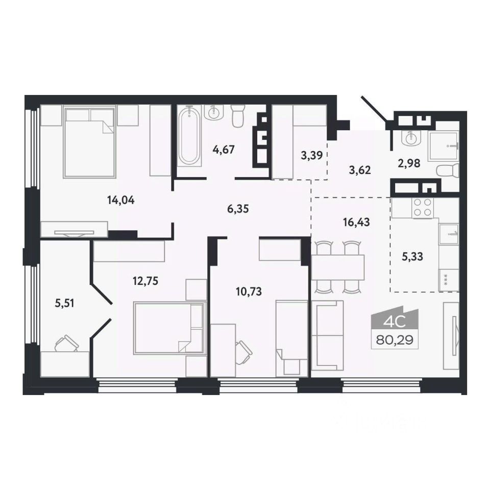 Общая площадь80,29 м²
