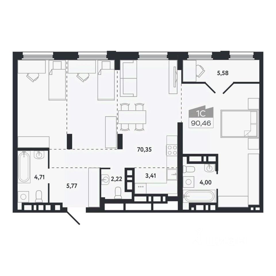 Общая площадь90,46 м²