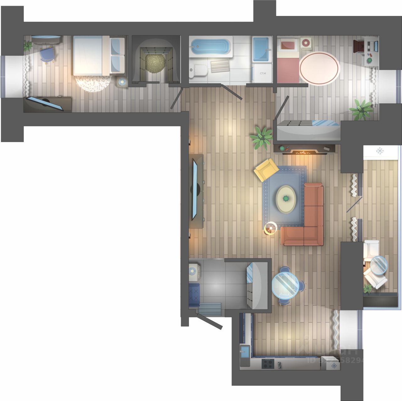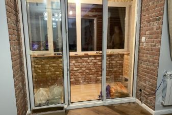 -Утепленный балкон с теплыми полами, со встроенным шкафом для хранения вещей.