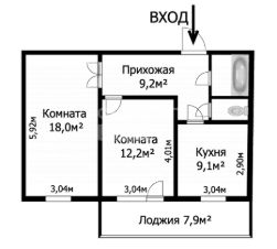Две уютные комнаты (18,0 м² и 12,2 м²), где каждый член семьи найдет свое пространство.