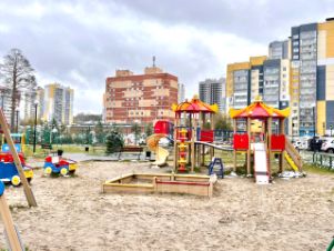 Во дворе большая современная детская площадка.