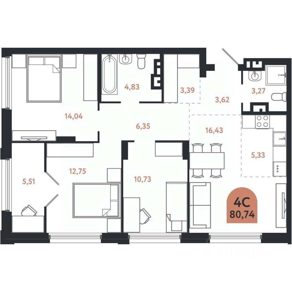 Общая площадь80,74 м²