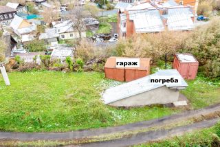 Есть свой металлический гараж. Во дворе есть погреба.