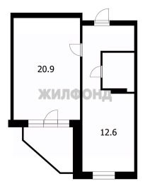 Просторная комната с выделенной кухонной зоной и выходом на лоджию, спальня, гардеробная, совмещенный санузел.