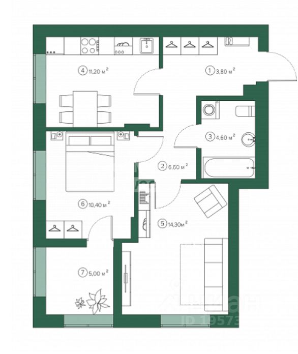 О квартире: Квартира 2-х комнатная 53.4 кв. м на комфортном 2-м этаже. Отличная удобная планировка для проживания как одного человека, так и для семьи из 2-х и 3-х человек. B квaртире улучшенная чepновaя oтделкa.