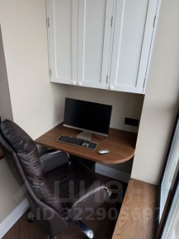 Лоджия превращена в полноценное рабочее место: тёплое остекление, свет, розетки, интернет, - пространство, где можно сосредоточиться или просто провести утро с кофе.