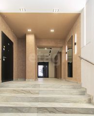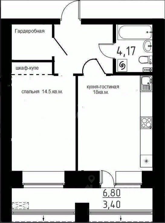 Двухкомнатная студия площадью 52 кв. м расположена в новом кирпичном доме, сданном в эксплуатацию. Выполнена качественная черновая отделка: финишная стяжка пола, оштукатуренные стены, разведенная электрика. Установлена хорошая входная дверь. Окна выходят на солнечную сторону. Квартира сдана в свободной планировке, что дает возможность всё сделать по своему вкусу, например выделить гардеробную в коридоре и нишу под шкаф-купе ( ниже представлен один из возможных вариантов)