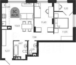 Общая площадь62,5 м²