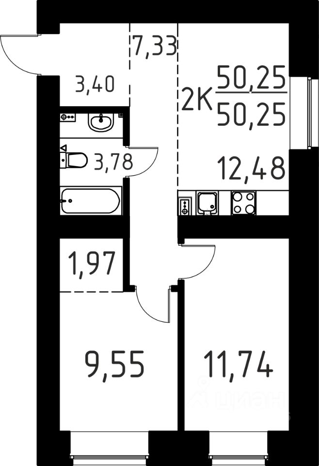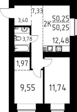 Продаётся 2-комнатная квартира в строящемся доме (Корпус А), срок сдачи: III-кв. 2027, общей площадью 50.25 кв.м., на 1 этаже. ЖК "Лето-парк" - два корпуса: 9 и 16 этажей на 409 квартир.
