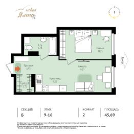 Общая площадь45,69 м²