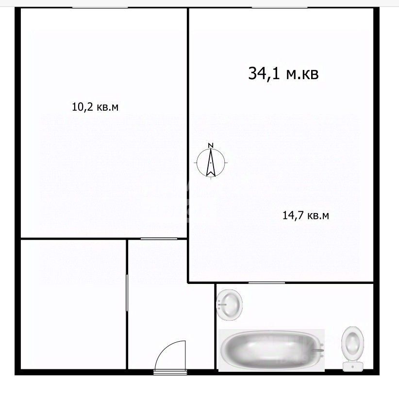 Общая площадь 34,1 кв м