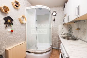 В гостинке выполнен ремонт. Пластиковые окна, качественные обои, на полу - линолеум, натяжной потолок. В кухонной зоне есть раковина и душевая кабина. Остается все, что вы видите на фотографиях, кроме телевизора. Туалет на троих. Все соседи благополучные. Чистота и порядок поддерживается. В секции всегда очень чисто и тихо. Соседи порядочные люди.