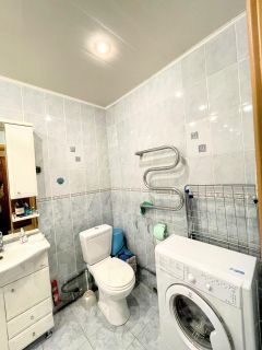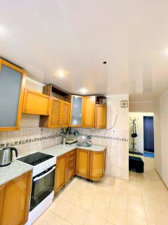 В квартире выполнен ремонт - на кухне на полу уложена плитка, фартук так же выложен кафельной плиткой. Установлены французские окна на входе на лоджию как в комнате так и на кухне. Санузел выложен полностью кафельной плиткой, заменяна сантехника установлены приборы учета воды.