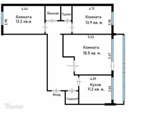 Арт. 125852365 Предлагаем к покупке просторную трехкомнатную квартиру возле мкр. Радонежский. Общая площадь квартиры составляет 74,8 кв.м., а кухни 11.2 кв. м. - места хватит с запасом.