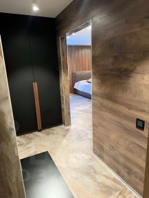 Встроенный шкаф из мангового дерева, французская штукатурка, стены из паркета, керамогранита и тд.
