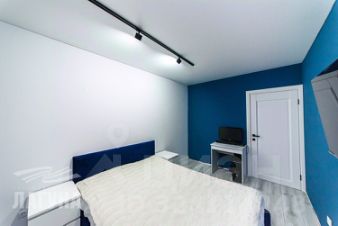 В зале и спальне натяжные потолки и точечные трековые светильники.