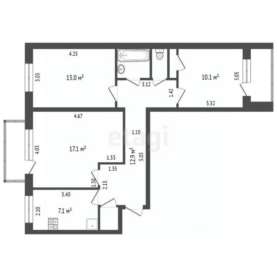 Помещения выходят на солнечные стороны, наполняя квартиру светом в течение всего дня. Ключевым преимуществом являются две застекленные лоджии, наличие кладовой, раздельный санузел.