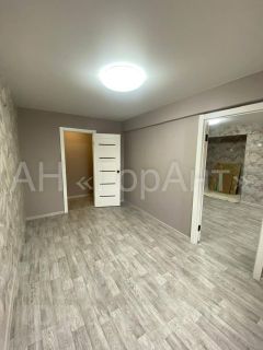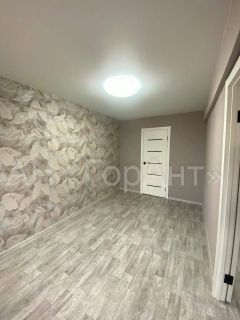 В квартире: на стенах новые обои, потолки натяжные со встроенным светильником, новые межкомнатные двери, предусмотрена гардеробная комната, на полу линолеум.