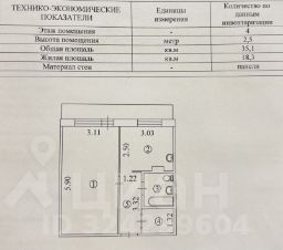 * Общая площадь: 35.1 кв.м