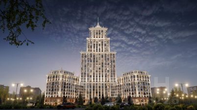 Строгие линии и четкие формы вместе с переменной этажностью от 7 до 30 этажей, шпилем на центральной башне создают характерный, узнаваемый силуэт столичной высотки. Главное здание МГУ послужило вдохновением для создания "Ломоносова".