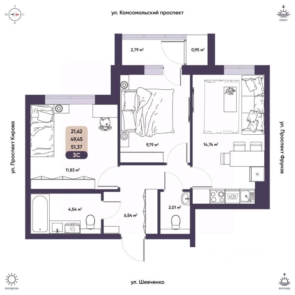 Общая площадь49,45 м²