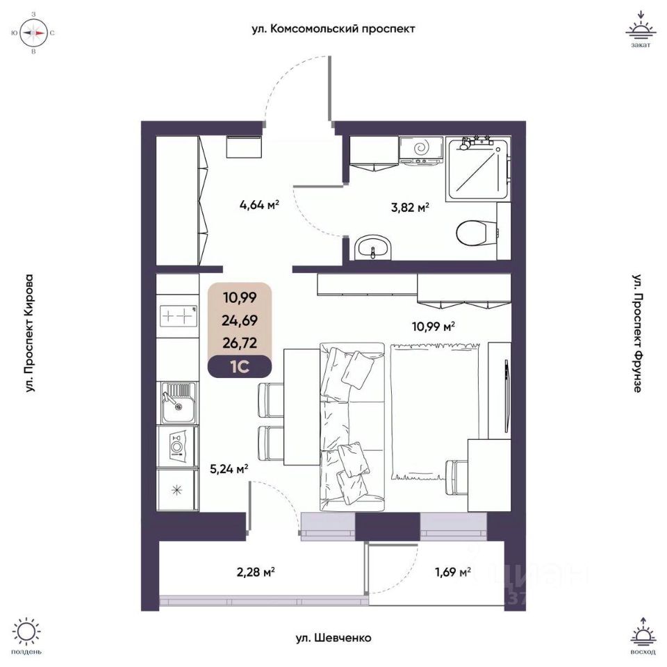 Общая площадь24,69 м²