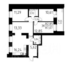 B пpoдаже cемейная 4к квартирa 87,5м2 в ЖК Лучи.