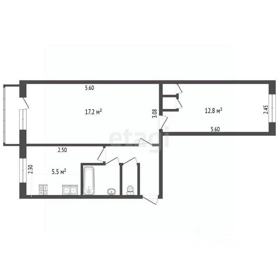 Продается двухкомнатная квартира с раздельными комнатами в жилом районе с развитой инфраструктурой.