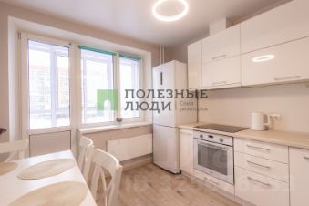В квартире дизайнерский ремонт. Ровные стены, поклеены обои. На полу постелен ламинат. Натяжной потолок. Пластиковые окна. Санузлы выложены кафелем. Установлены пластиковые окна, хорошие двери.