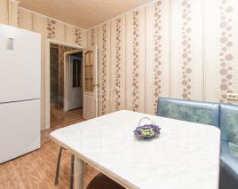 Квартира отличается удобной планировкой: просторные изолированные комнаты, вместительная кухня и удобный коридор. Дом расположен в тихом районе с благоустроенным двором — есть озеленение и детская площадка. Для автовладельцев достаточно парковочных мест . Соседи — спокойные, семейные люди.