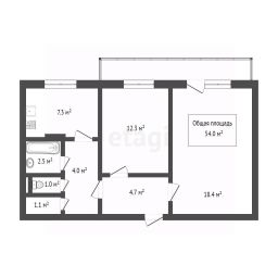 53,9 м²