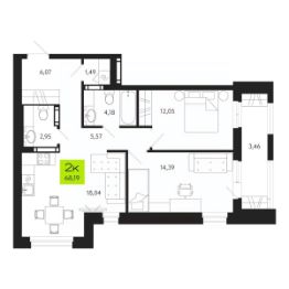 Продается 2-комн. квартира, 68,19 м²